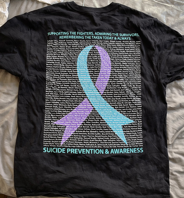 When I wear this shirt, I feel connected to every other name printed on it. So many stories, so many lives. It reminds me that we have to keep talking about mental health and supporting each other.